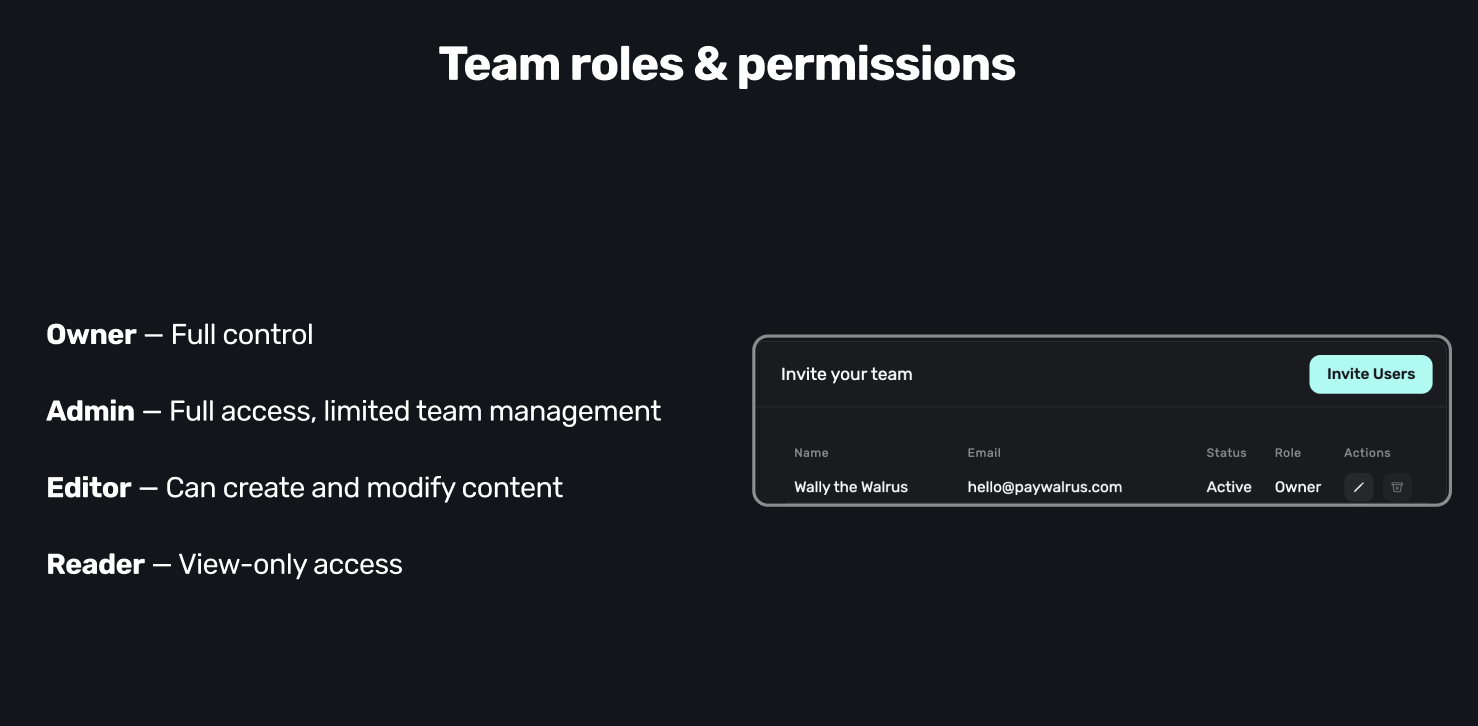 Team roles and permissions: Now, you have complete control over who can see what when you invite them to your Superwall team.
