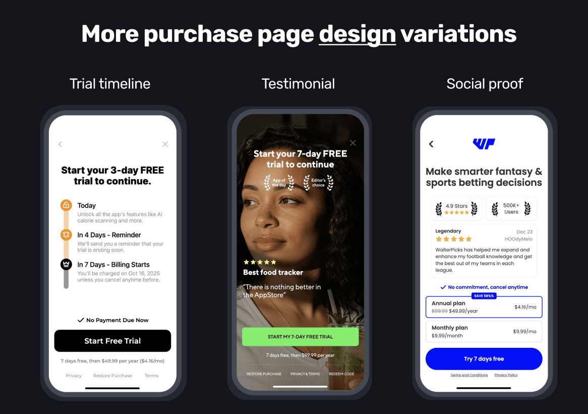 Design your trial paywalls: In our tests, these are winning nearly every single time. One hypothesis as to why? It gives users control over something they've not previously had control over — the terms of the trial.